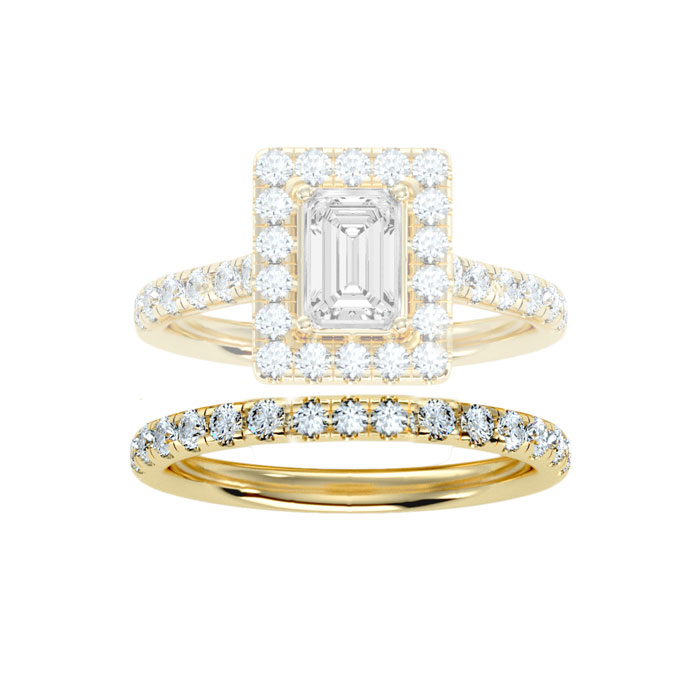This 1/2ct Diamond Matching Wedding Band for unbelievable diamond bridal set features a sparkling 1 carat emerald shape center diamond bridal set. This wedding bad takes 18 round diamonds and color H-I and Clarity is SI2-I1 . This ring is in 14 karat yellow gold.