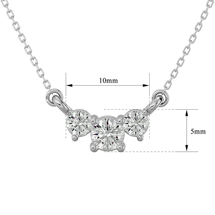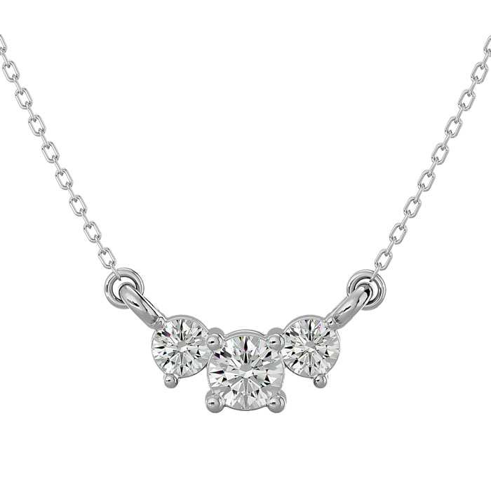 1/2 Carat Diamond Three Stone Necklace In 14 Karat White Gold, 18 Inches