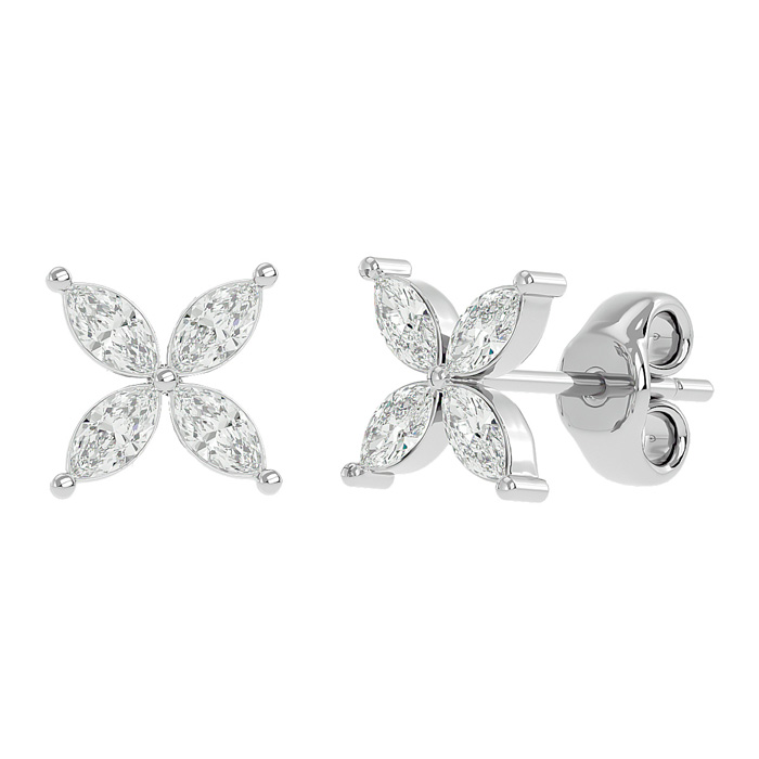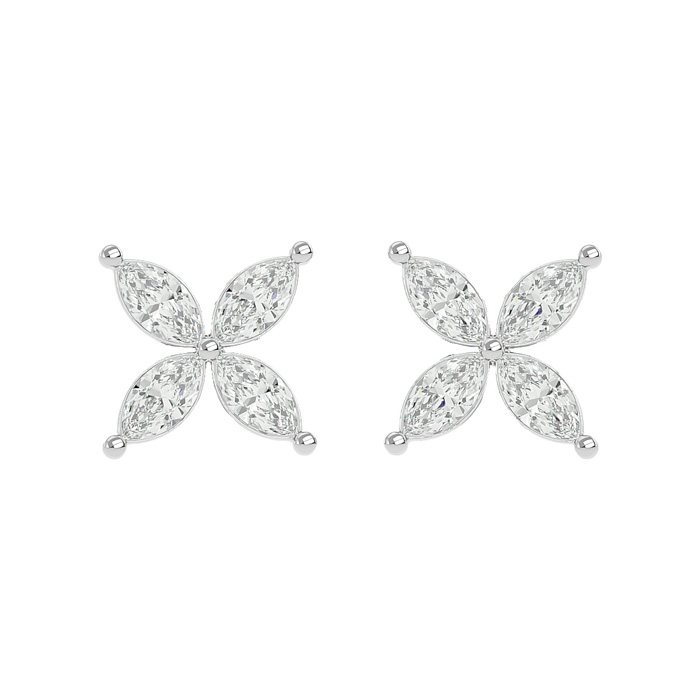 1/2 Carat Natural Marquise Shape Diamond Cluster Stud Earrings In 14 Karat White Gold