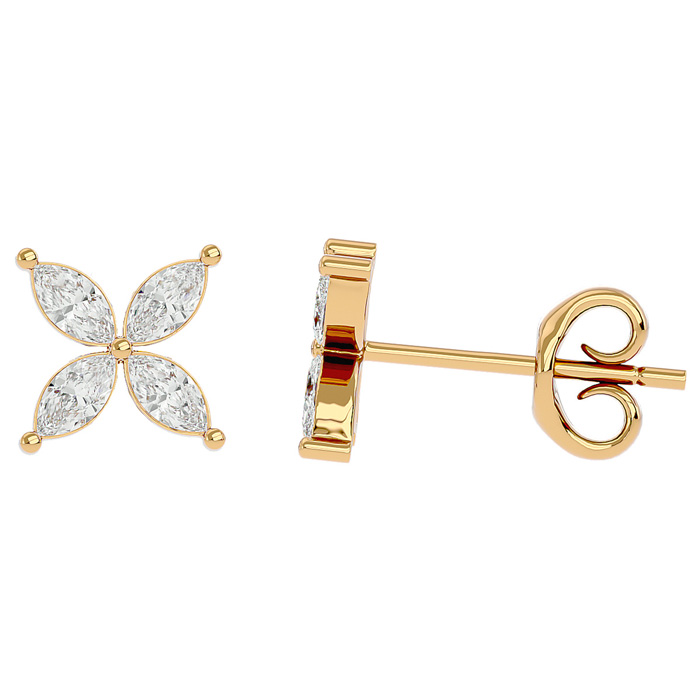 1/2 Carat Natural Marquise Shape Diamond Cluster Stud Earrings In 14 Karat Yellow Gold