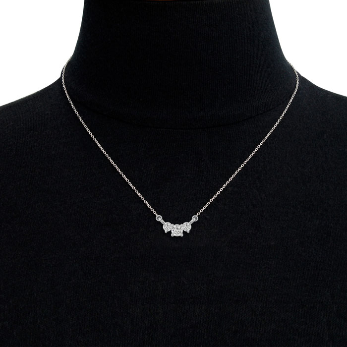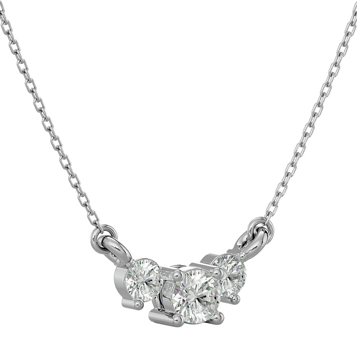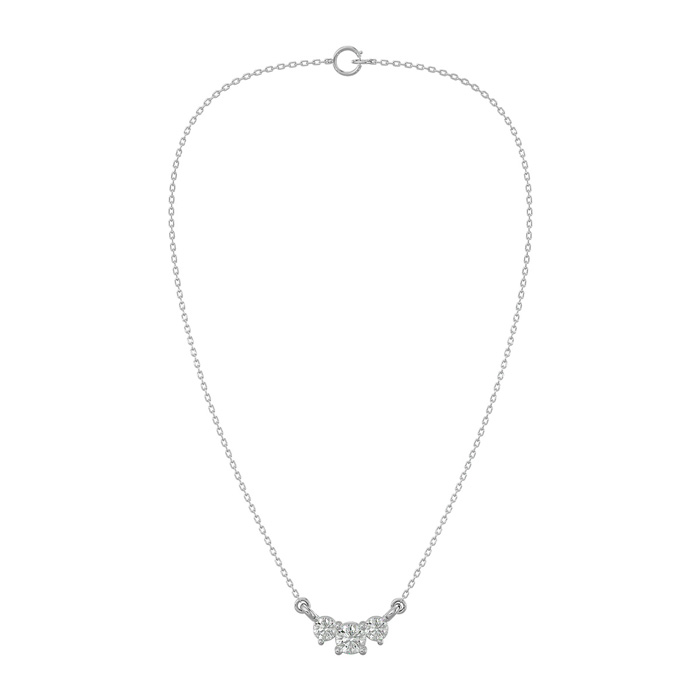 1/2 Carat Moissanite Three Stone Necklace In 14 Karat White Gold, 18 Inches