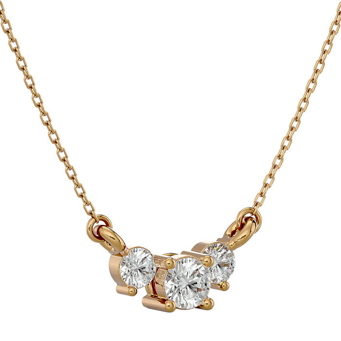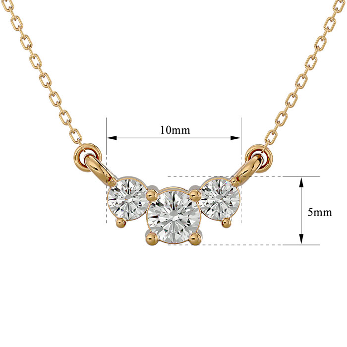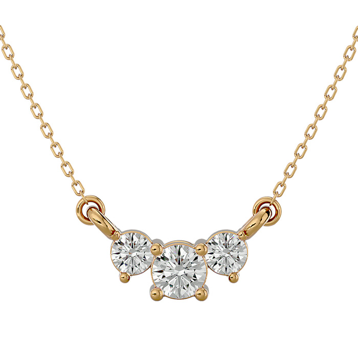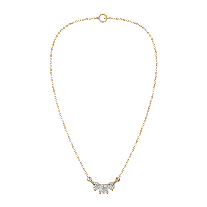 1/2 Carat Moissanite Three Stone Necklace In 14 Karat Yellow Gold, 18 Inches