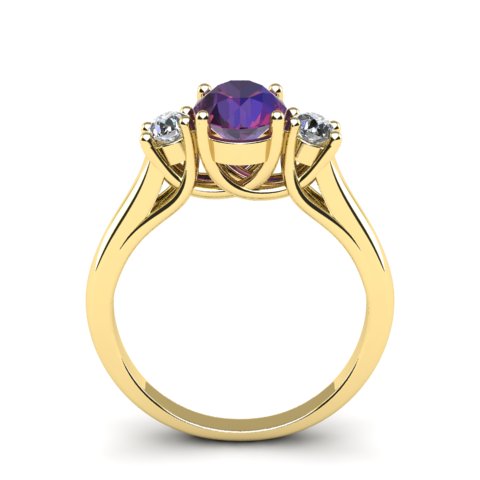 1/2 Carat Oval Shape Amethyst and Two Diamond Ring In 14 Karat Yellow Gold