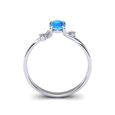This stunning gemstone and diamond ring features one 6x4mm oval shape blue topaz gemstone at 0.55 carats. It is surrounded by 2 sparkling diamonds in I-J color, I1-I2 clarity at 0.02 carats. Total gem weight is 0.57 carats. This ring is crafted in 14 karat white gold.