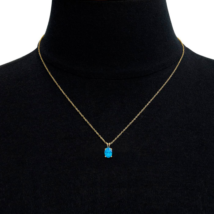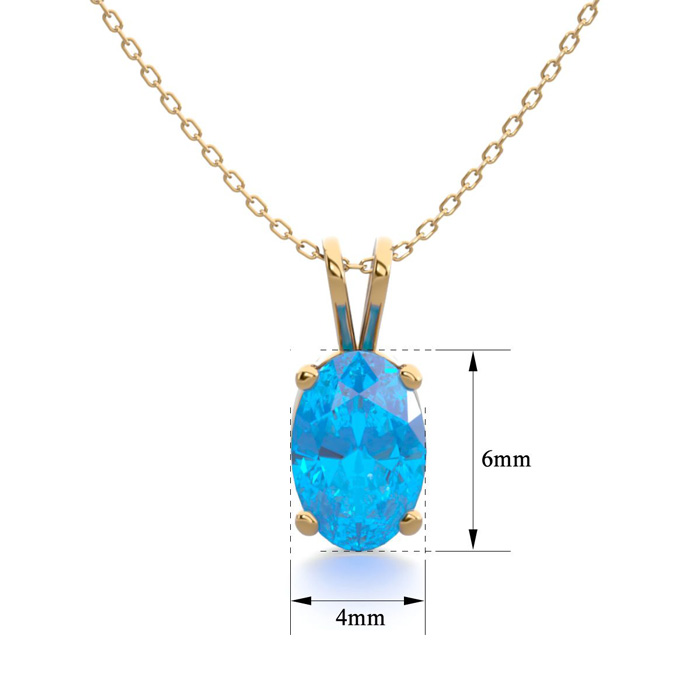 1/2 Carat Oval Shape Blue Topaz Necklace In 14K Yellow Gold Over Sterling Silver, 18 Inches