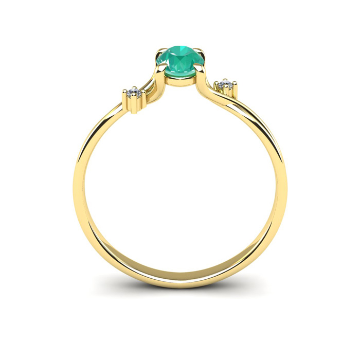 1/2 Carat Oval Shape Emerald and Two Diamond Accent Ring In 14 Karat Yellow Gold