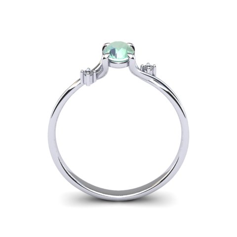 This stunning gemstone and diamond ring features one 6x4mm oval shape green amethyst gemstone at 0.43 carats. It is surrounded by 2 sparkling diamonds in I-J color, I1-I2 clarity at 0.02 carats. Total gem weight is 0.45 carats. This ring is crafted in 14 karat white gold.