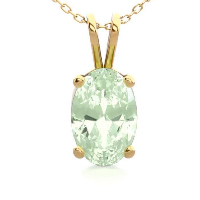 1/2 Carat Oval Shape Green Amethyst Necklace In 14K Yellow Gold Over Sterling Silver, 18 Inches