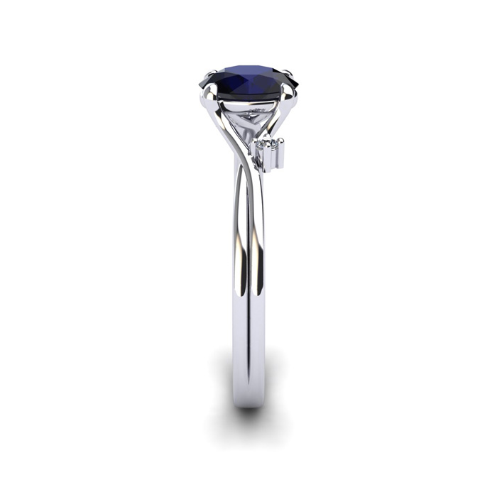 1/2 Carat Oval Shape Sapphire and Two Diamond Accent Ring In 14 Karat White Gold