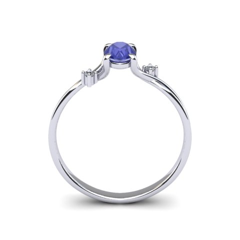 1/2 Carat Oval Shape Tanzanite and Two Diamond Accent Ring In 14 Karat White Gold