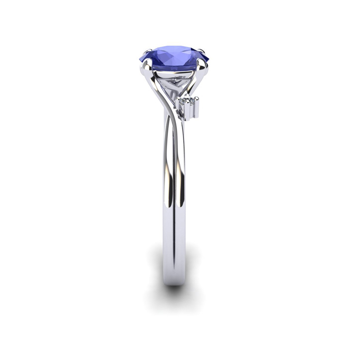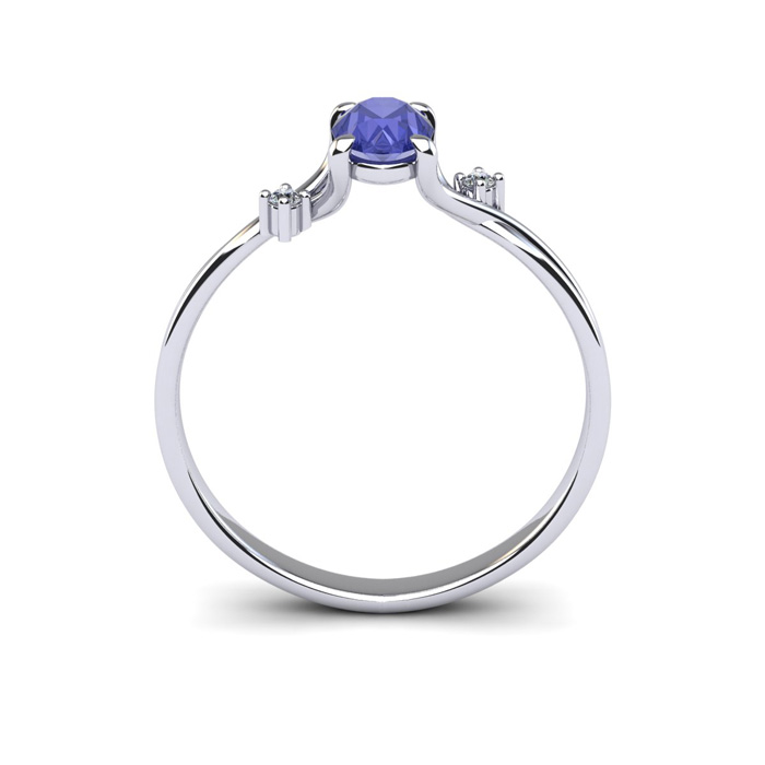 1/2 Carat Oval Shape Tanzanite and Two Diamond Accent Ring In 14 Karat White Gold