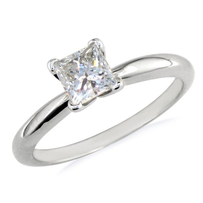 1/2 Carat Natural Princess Diamond Solitaire Engagement Ring In Platinum