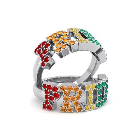 Show your PRIDE with this standout ring! Ideal for women and men, this ring features various created emerald, created sapphire and created ruby gemstones. Total carat weight is 1/2 carat. This ring is in 14 karat white gold.