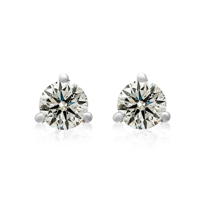 1/2 Carat Natural Round Diamond Stud Earrings in 14 Karat White Gold with Martini Setting