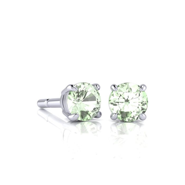 1/2 Carat Round Shape Green Amethyst Stud Earrings In Sterling Silver