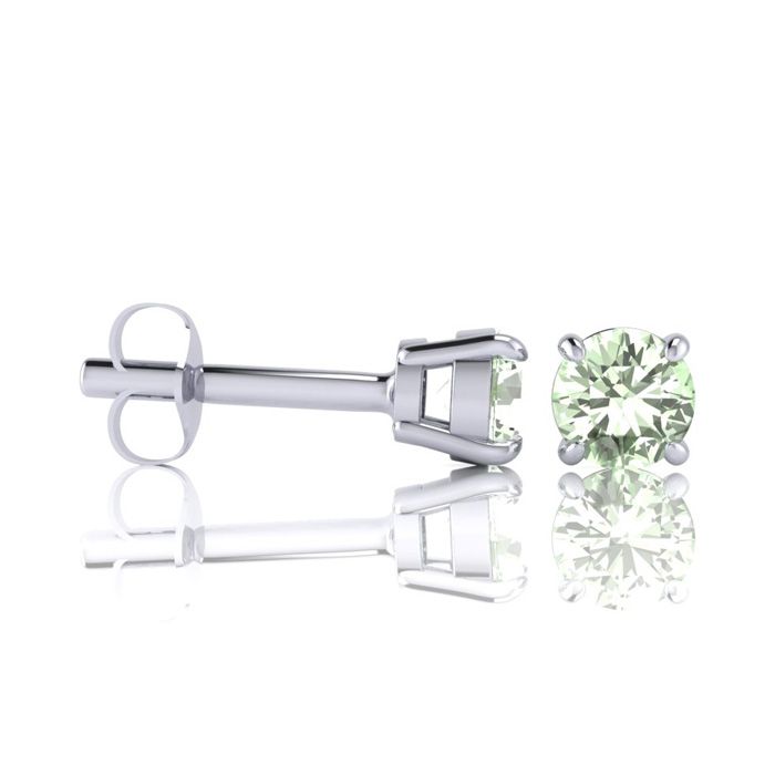 These classic stud earrings feature two 3mm round shape green amethyst gemstones. Each stone measures approximately 1/4 carat for a total approximate weight of 1/2 carat. These earrings are in sterling silver and have comfortable and secure post with friction backs.
