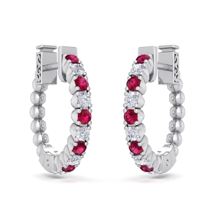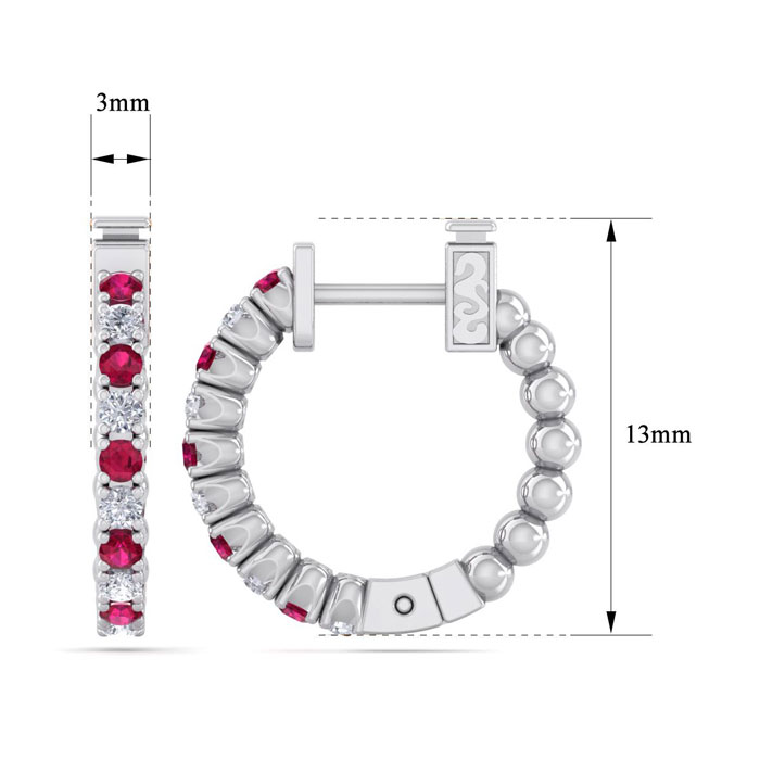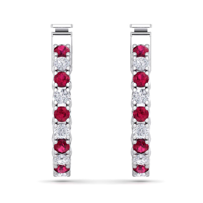 1/2 Carat Ruby and Diamond Hoop Earrings In 14 Karat White Gold, 1/2 Inch