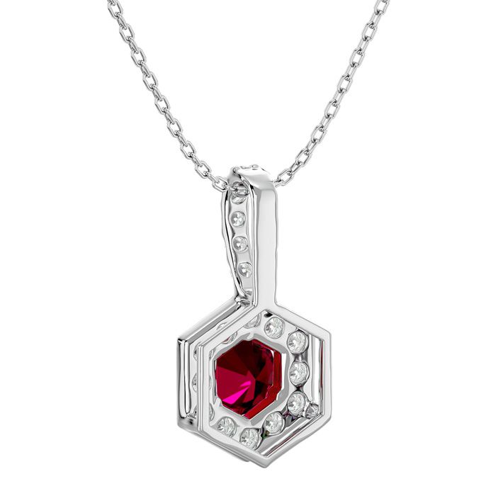1/2 Carat Ruby and Halo Diamond Necklace In 14 Karat White Gold, 18 Inches