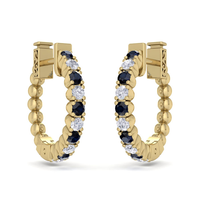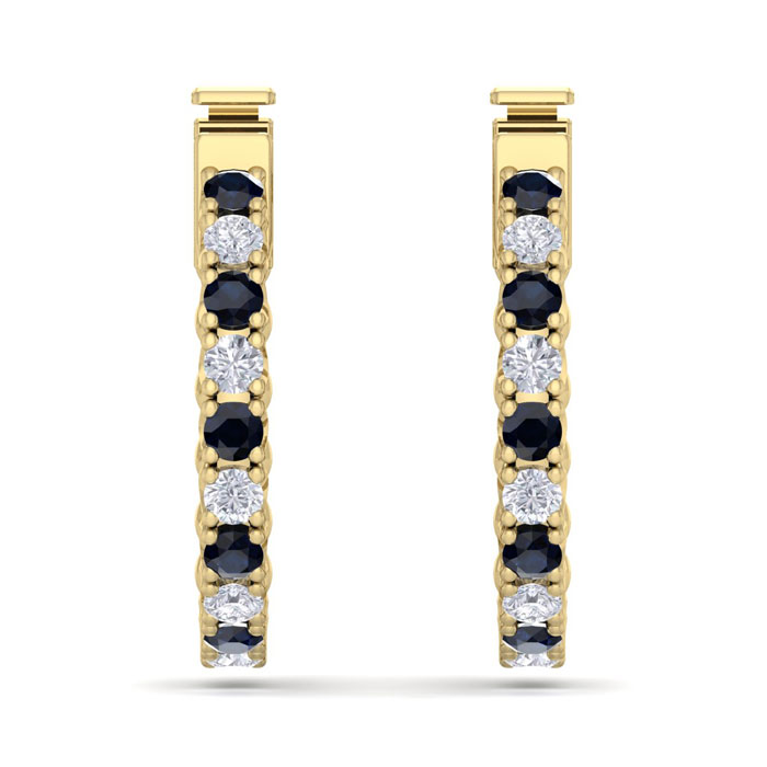 1/2 Carat Sapphire and Diamond Hoop Earrings In 14 Karat Yellow Gold, 1/2 Inch