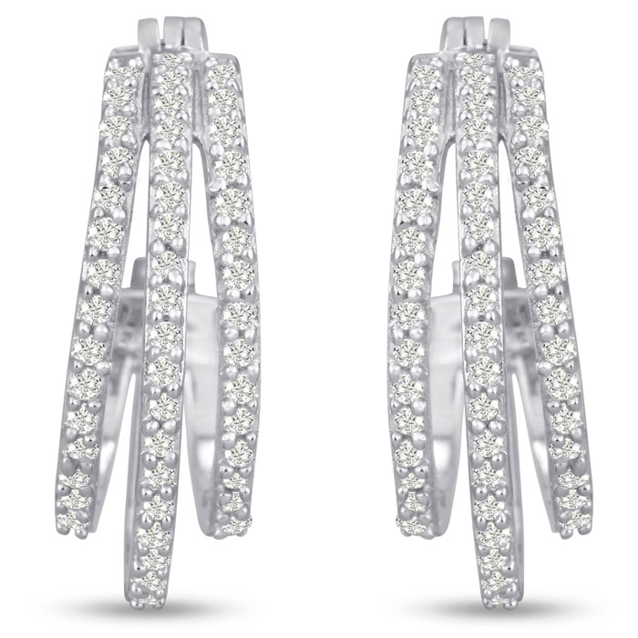 1/2 Carat Triple Moissanite Hoop Earrings In Platinum Overlay