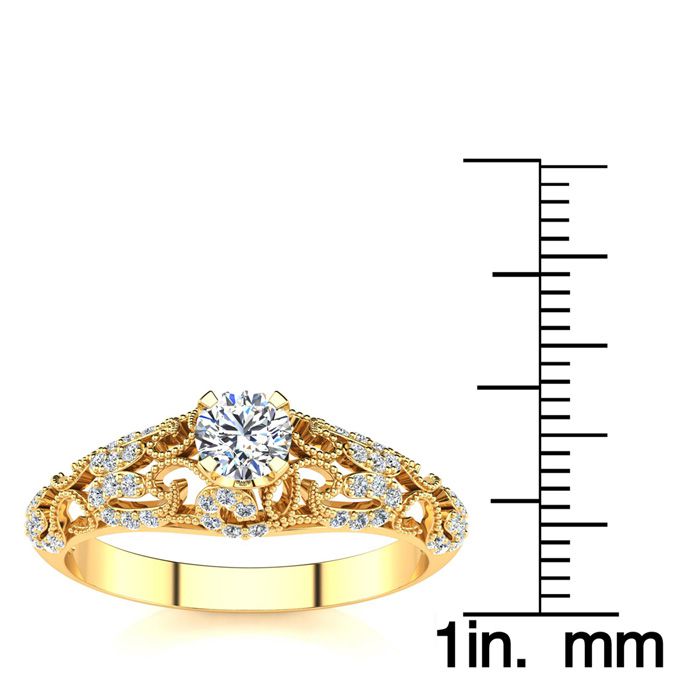 When the ring arrived, I was shocked at the intricate details. This is a vintage style ring at a very inexpensive price that over delivers. Although the clarity of the diamond is lower on the scale, it shines beautifully. My fiance is in love with this ring and I would gladly order from Super Jeweler again in the future. --Jason.