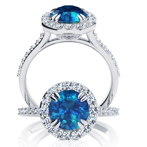 1.25 Carat Perfect Halo Blue Diamond Engagement Ring In 14K White Gold