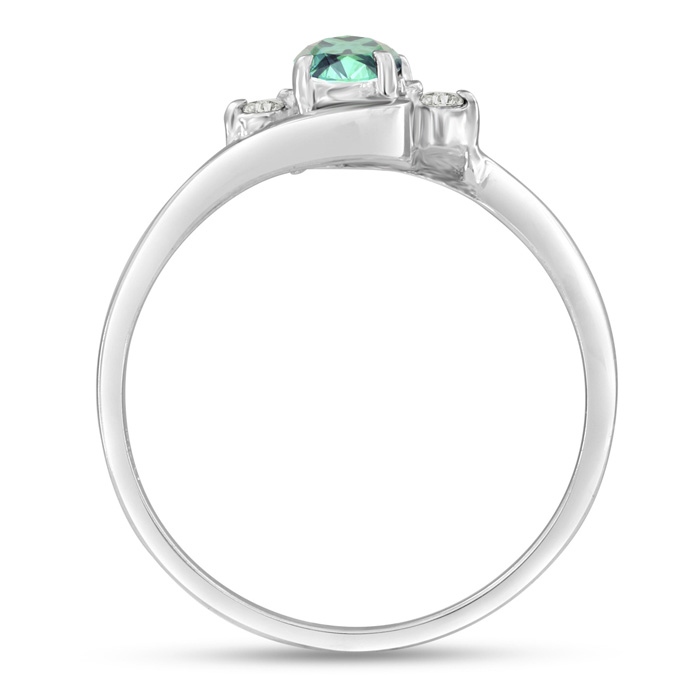 1/2ct Green Amethyst and Diamond Ring In 14K White Gold
