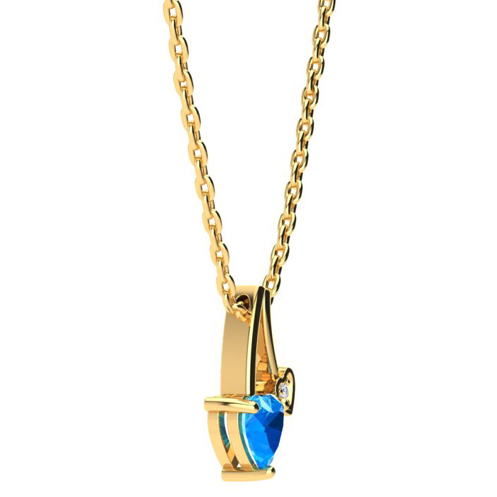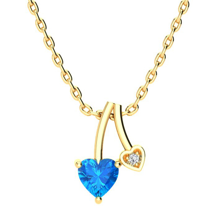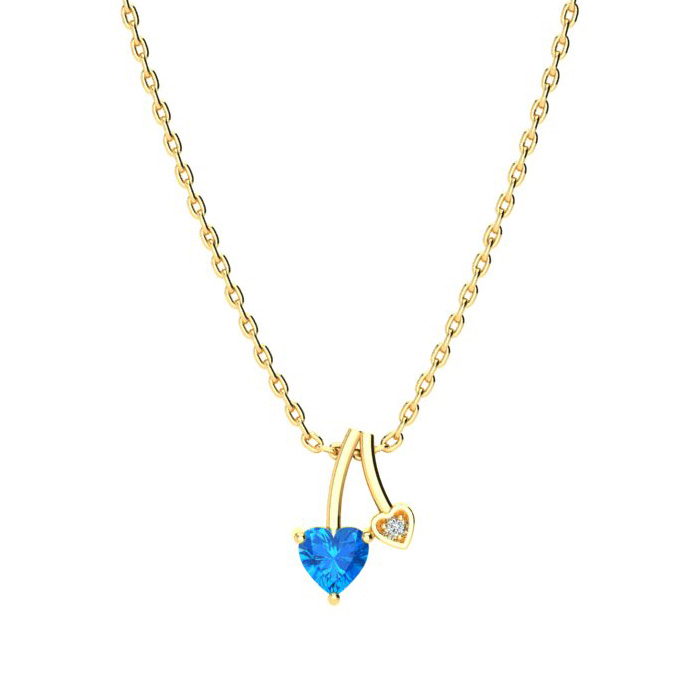 1/2ct Heart Shaped Blue Topaz and Diamond Necklace in 10k Yellow Gold