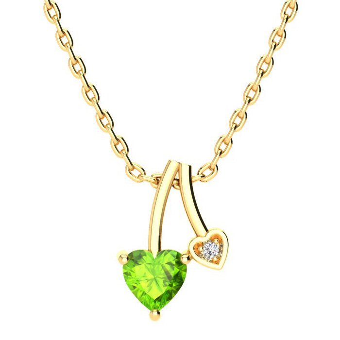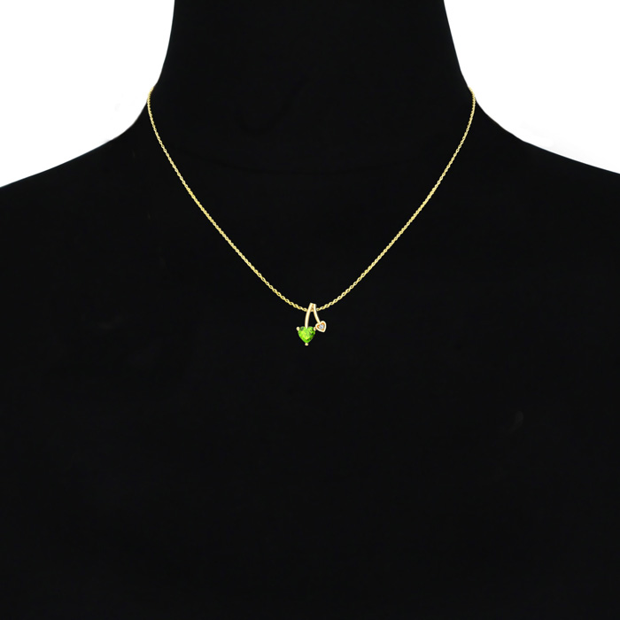 1/2ct Heart Shaped Peridot and Diamond Necklace in 10k Yellow Gold