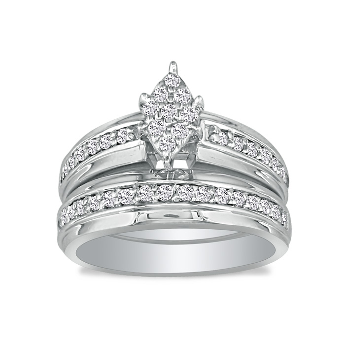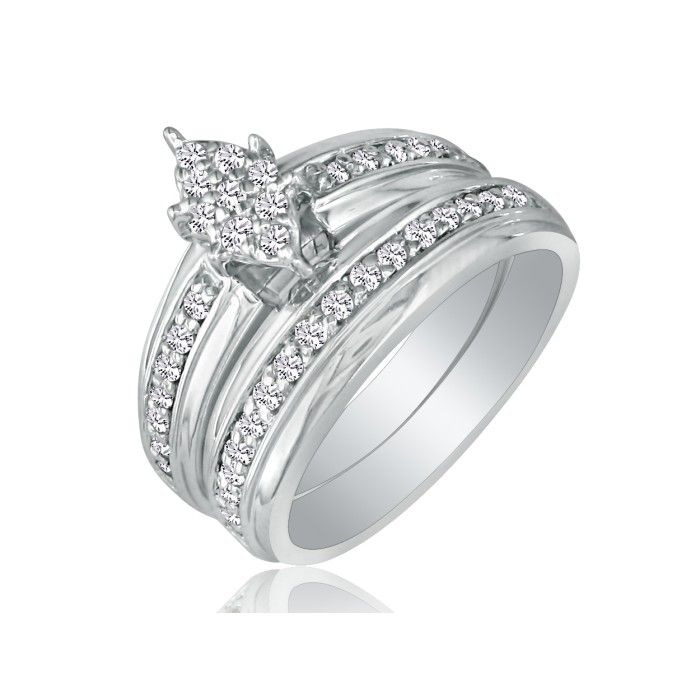 I got this ring set from my fiance for a xmas gift, i loved it, looks GREAT far away but looks cheap up close,has hardly any sparkle to it . I got it on Dec 31st and not even a month later(1-18-2010) a side diamond fell out, I am now sending it back and will be receiving my money back, i guess you get what you pay for.--Lbell.