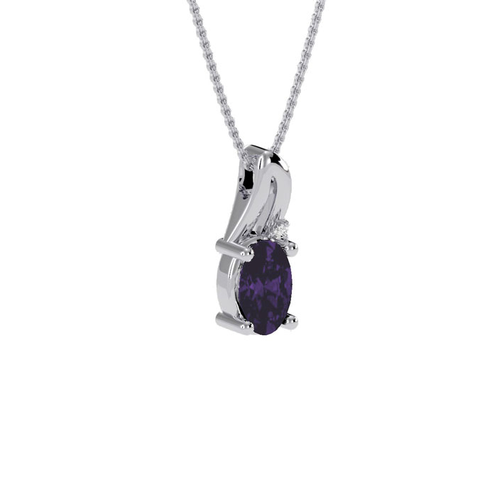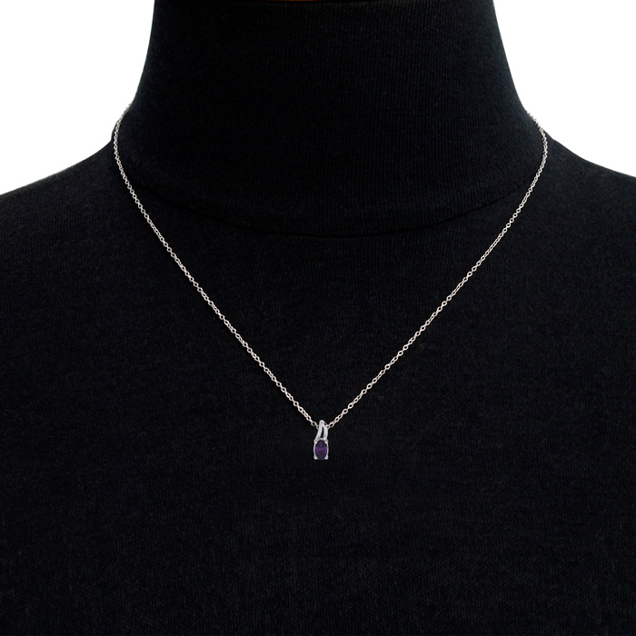 1/2ct Oval Shape Amethyst and Diamond Necklace in 10k White Gold