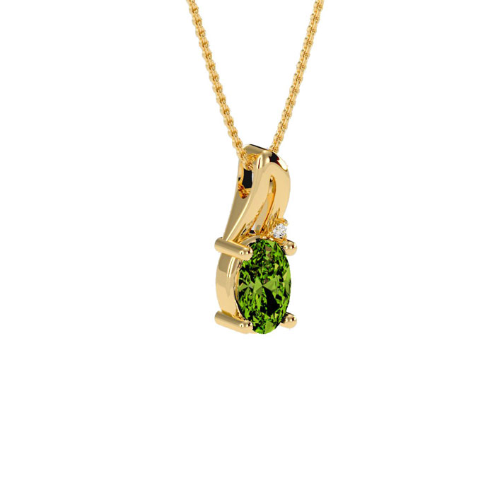 1/2ct Oval Shape Peridot and Diamond Necklace in 10k Yellow Gold