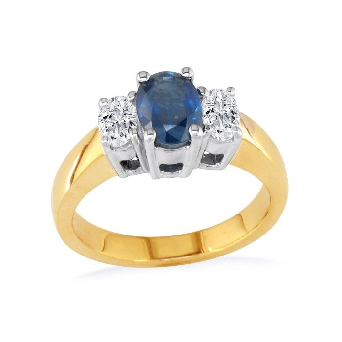 1/2ct Sapphire and Oval Diamond Ring in 14k Yellow Gold
