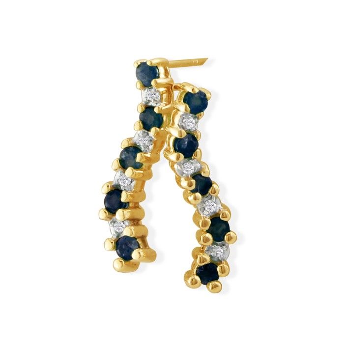 In jewelry, there are some combinations that are absolutely classic. These gorgeous 1/2 carat sapphire journey diamond earrings set in 10k yellow gold are a perfect example. The deep blue of sapphire jewelry with the dazzle of diamonds, and the timelessness of yellow gold...it's fine gemstone jewelry with the emphasis on 'fine'.