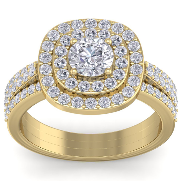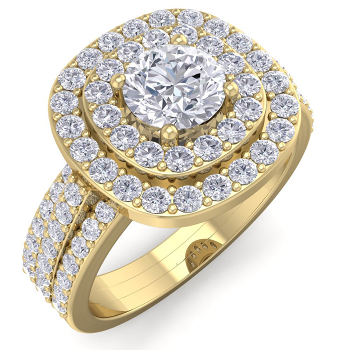 1 3/4 Carat Natural Double Halo Diamond Engagement Ring In 14 Karat Yellow Gold