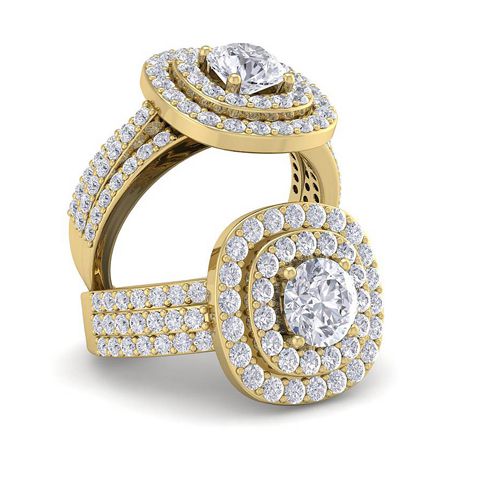 1 3/4 Carat Natural Double Halo Diamond Engagement Ring In 14 Karat Yellow Gold