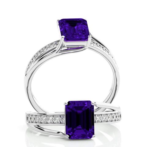 1 3/4 Carat Emerald Shape Amethyst and Diamond Ring In 14 Karat White Gold