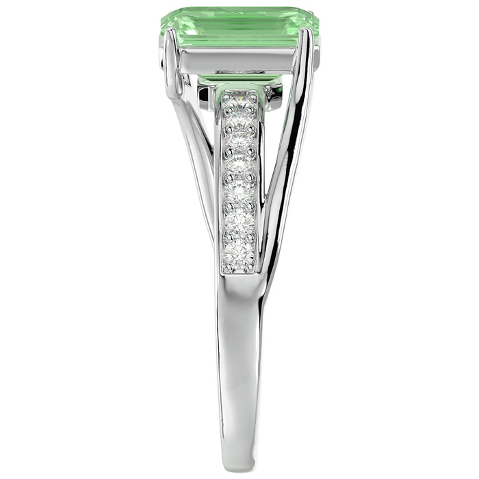 1 3/4 Carat Emerald Shape Green Amethyst and Diamond Ring In 14 Karat White Gold