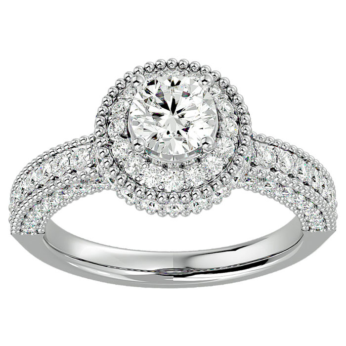 1 3/4 Carat Natural Halo Diamond Engagement Ring In 14 Karat White Gold
