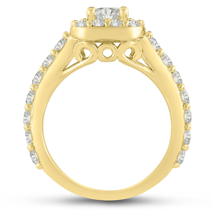 1 3/4 Carat Natural Halo Diamond Engagement Ring in 14 Karat Yellow Gold