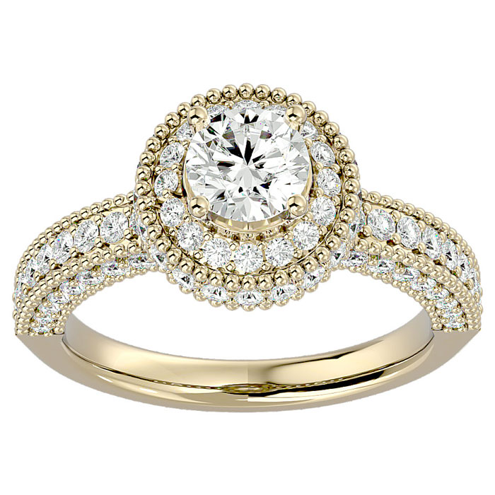 1 3/4 Carat Natural Halo Diamond Engagement Ring In 14 Karat Yellow Gold