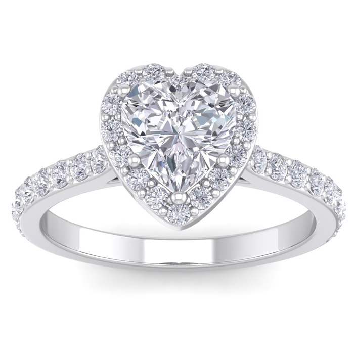 1 3/4 Carat Natural Heart Shape Halo Diamond Engagement Ring In 14 Karat White Gold