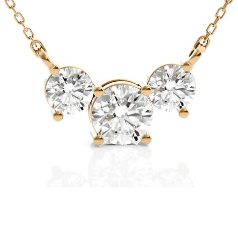 1 3/4 Carat Moissanite Three Stone Necklace In 14 Karat Yellow Gold, 18 Inches