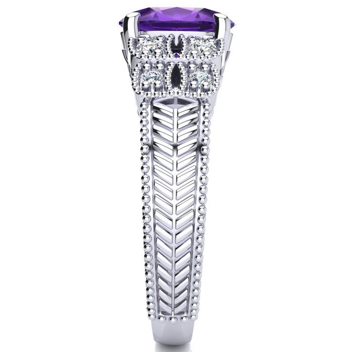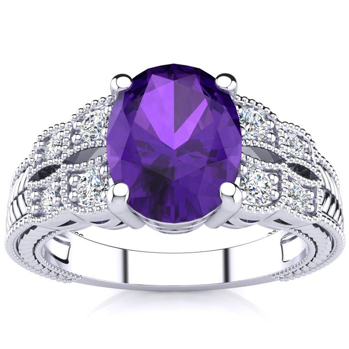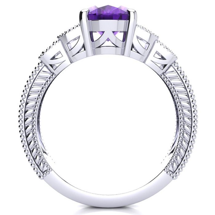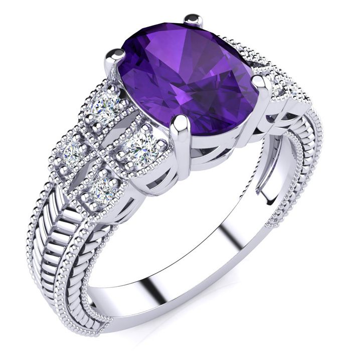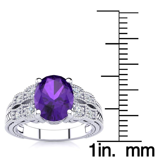 1 3/4 Carat Oval Shape Amethyst and Diamond Ring In 10 Karat White Gold