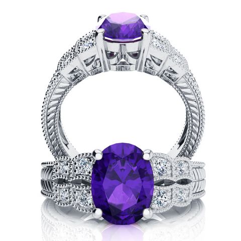 1 3/4 Carat Oval Shape Amethyst and Diamond Ring In 10 Karat White Gold