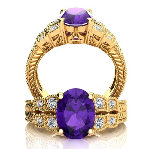 1 3/4 Carat Oval Shape Amethyst and Diamond Ring In 10 Karat Yellow Gold
