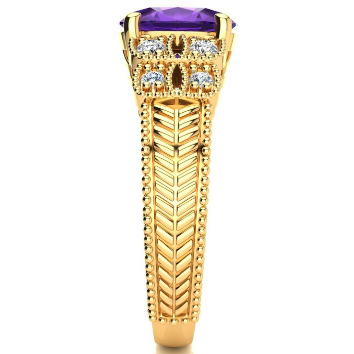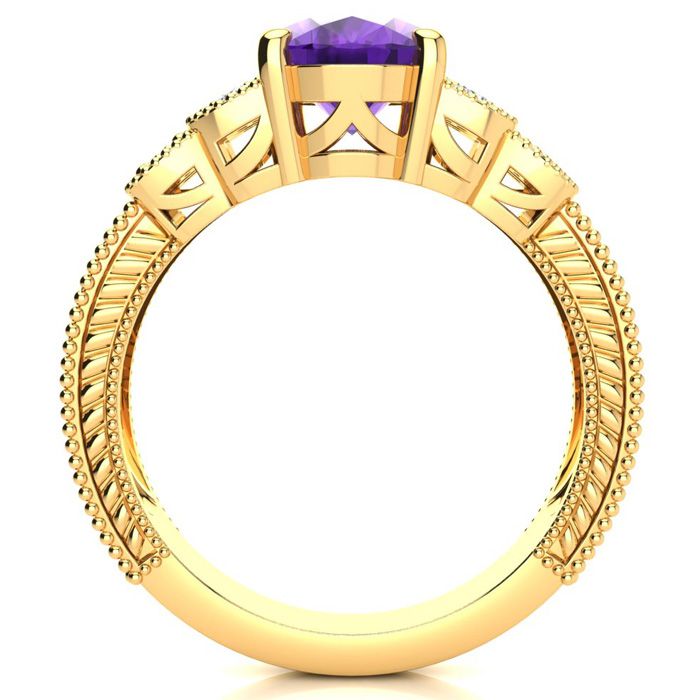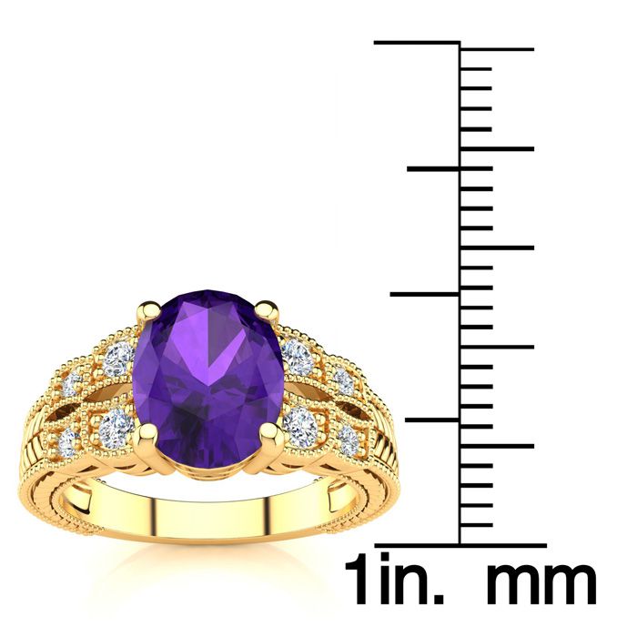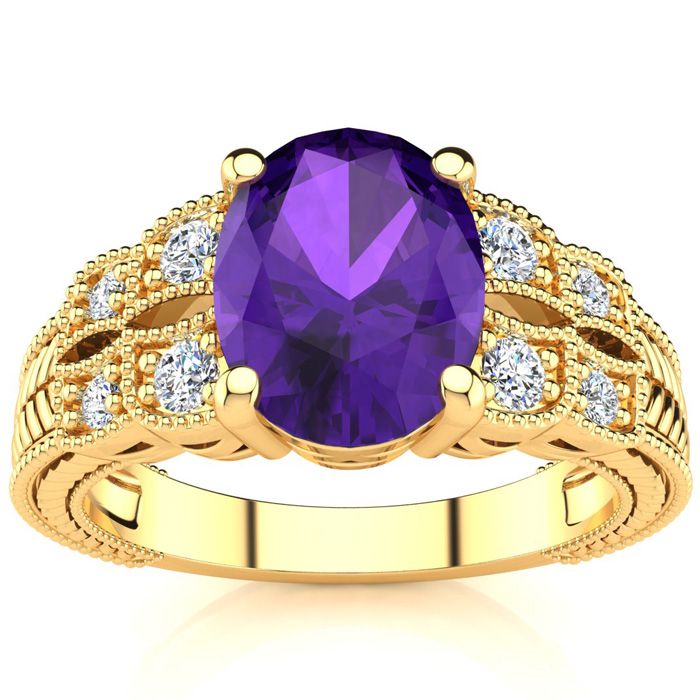 1 3/4 Carat Oval Shape Amethyst and Diamond Ring In 10 Karat Yellow Gold