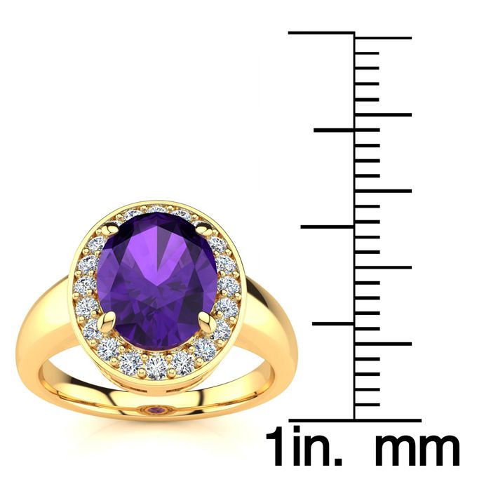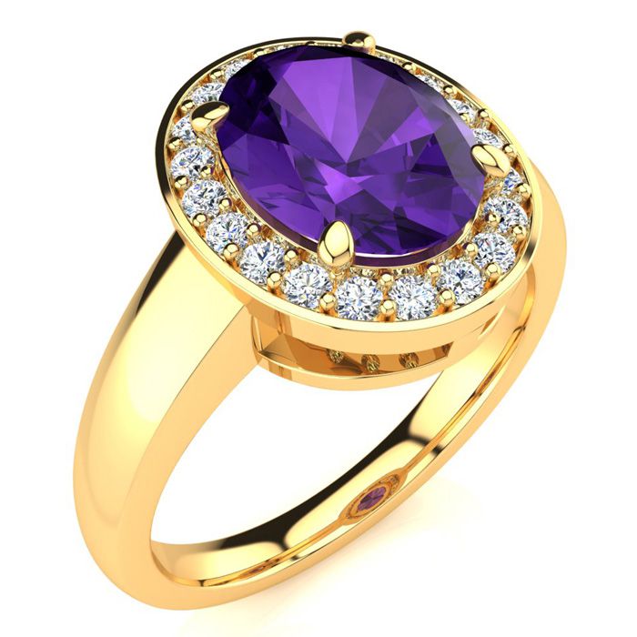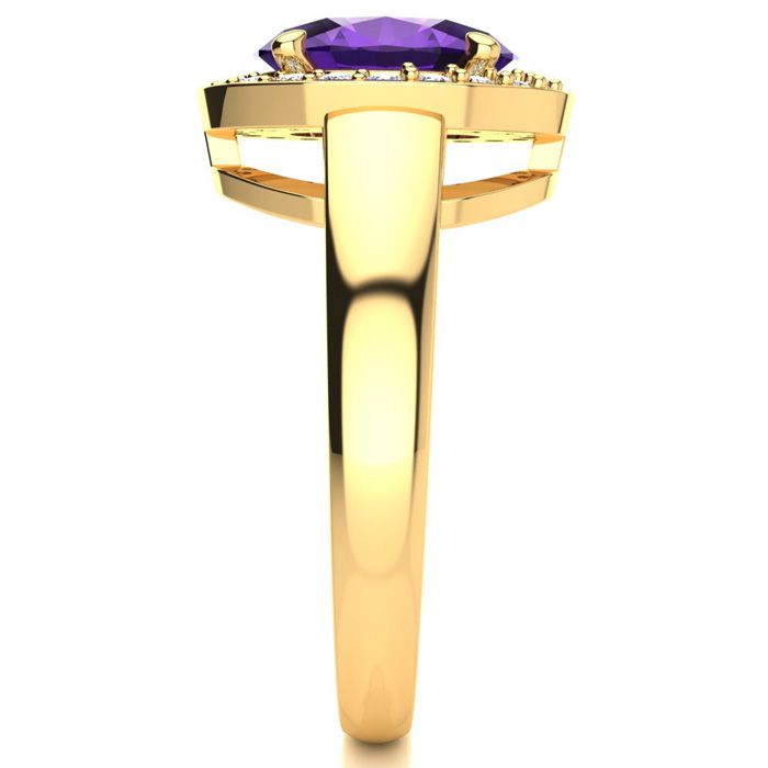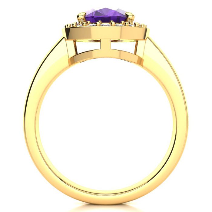 1 3/4 Carat Oval Shape Amethyst and Halo Diamond Ring In 14 Karat Yellow Gold