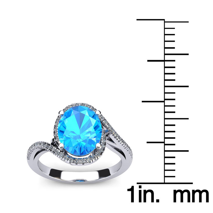 1 3/4 Carat Oval Shape Blue Topaz and Halo Diamond Ring In 14 Karat White Gold