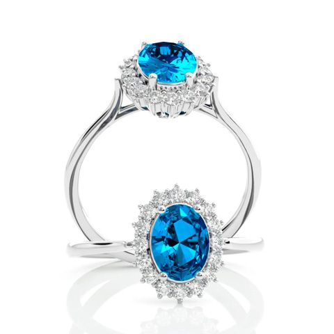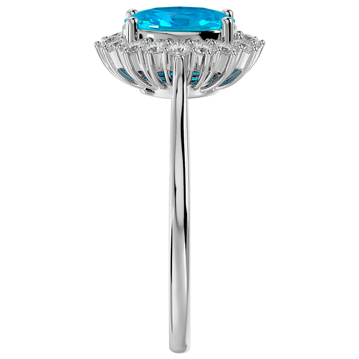 1 3/4 Carat Oval Shape Blue Topaz and Halo Diamond Ring In 14 Karat White Gold